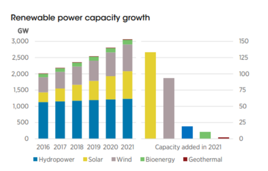Der jüngste „2022 Renewable Energy Generation Statistics Report“ der Internationalen Agentur für Erneuerbare Energien (IRENA) zeigt, dass die weltweit neu installierte Kapazität an erneuerbaren Energien im Jahr 2021 257 Gigawatt (GW) erreichte, was einem Anstieg von 9,1 % gegenüber dem Vorjahr entspricht. Damit übersteigt die weltweite kumulierte installierte Kapazität an erneuerbaren Energien 3 TW (3.064 GW).