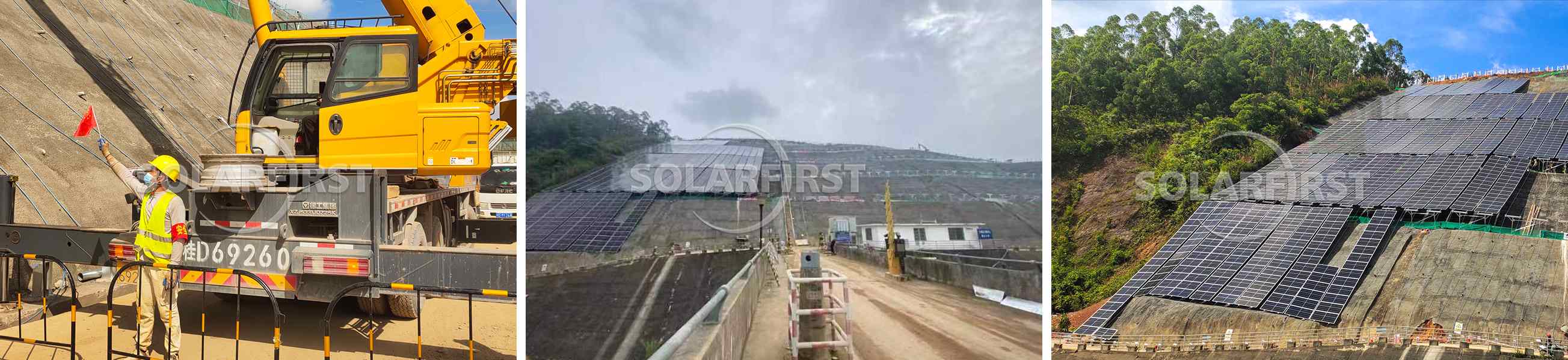Das Projekt befindet sich am Südhang eines Wasserkraftwerks in Wuzhou, Guangxi. Das Gelände in diesem Gebiet ist komplex, mit steilen (35–45 Grad) und unregelmäßigen Hängen, was große Schwierigkeiten und Herausforderungen bei der Positionierung, der Messung, dem Bau und der Installation sowie dem sicheren Betrieb mit sich bringt. Nach zahlreichen Untersuchungen vor Ort, Planbesprechungen, Entwürfen und Überprüfungen schlug das technische Team der Solar First Group eine wissenschaftlich fundierte, präzise und effiziente Lösung für flexible Tragseile vor, die auf den örtlichen Gegebenheiten basiert und eine optimale Nutzung brachliegender Berggebiete gewährleistet. Dieser Plan erhielt großes Lob vom Eigentümer hinsichtlich technischer Gestaltung, Bausicherheit und Effizienz.