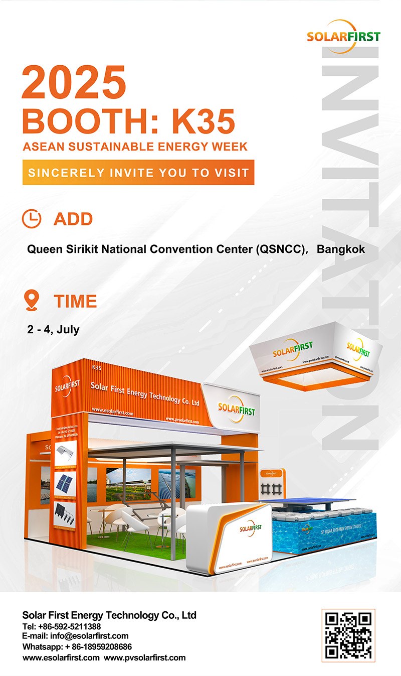 Die Solar First Group nimmt an der ASIA Sustainable Energy Week 2025 (2.-4. Juli) im Queen Sirikit National Convention Center (QSNCC) in Bangkok teil. Diese führende thailändische Messe bringt weltweit führende Unternehmen aus den Bereichen Photovoltaik, Energiespeicherung und nachhaltige Mobilität zusammen, um innovative Energielösungen zu präsentieren. Besuchen Sie uns am Stand K35 und entdecken Sie unsere hochfesten, modularen PV-Montagesysteme speziell für südostasiatische Märkte.