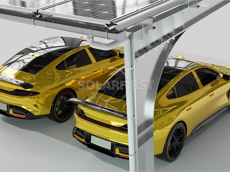 Der freitragende Stahlcarport zeichnet sich durch ein einzigartiges, wasserdichtes Design aus, das Regenwasser effizient aus den Zwischenräumen zwischen den Solarmodulen durch integrierte Drainagerohre, -kanäle und -kanäle ableitet. Dies gewährleistet zuverlässigen Wetterschutz ohne Klebstoffe oder Gummifüllungen. Die vielseitige freitragende Struktur passt sich nahtlos an schräge und gerade Parkflächen an und maximiert so die Raumausnutzung und Fahrzeugabdeckung.