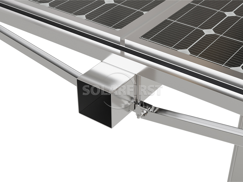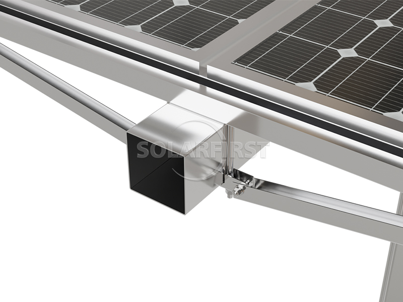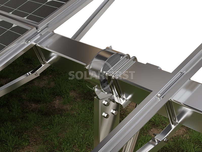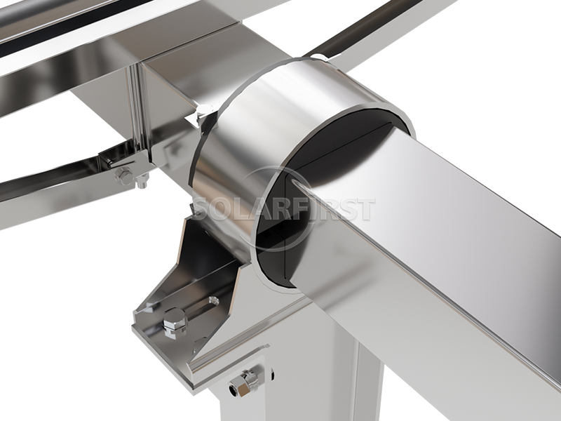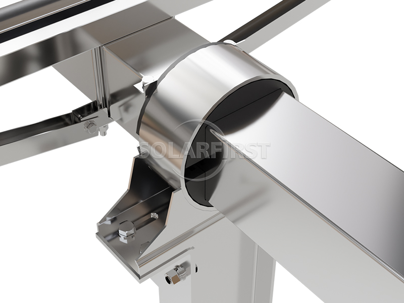 Die Hauptstruktur besteht aus feuerverzinktem oder Zn-Al-Mg-beschichtetem Stahl mit einer mittleren Beschichtungsdicke von ≥80 μm. Sie verfügt über ein Schwenkantriebssystem und unterstützt verschiedene Fundamenttypen, darunter PHC, Ortbetonpfähle und Stahlpfähle.