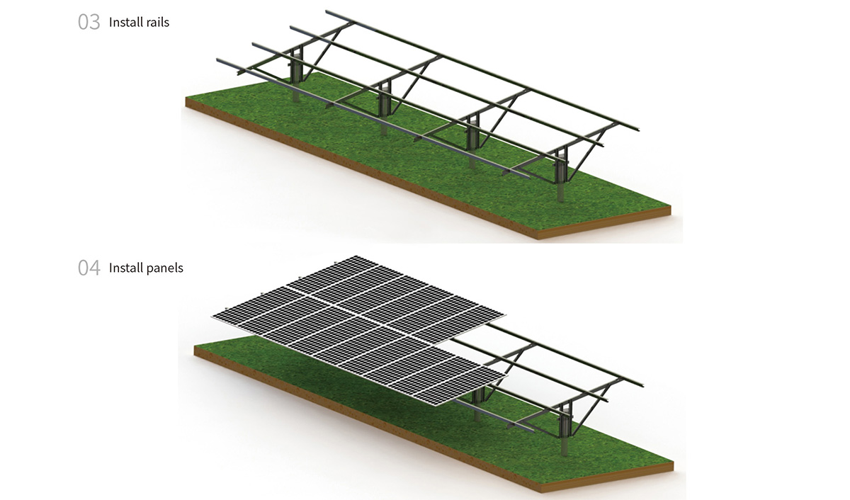 Die Konstruktion wurde für den Einsatz in Bereichen konzipiert, in denen herkömmliche Fundamente nicht ausreichen. Sie besteht aus feuerverzinktem Stahl oder Zn-Al-Mg-beschichtetem Stahl, der an die standortspezifischen Bedingungen angepasst ist und so langfristige Korrosionsbeständigkeit und strukturelle Zuverlässigkeit gewährleistet. Mit einer Windlastkapazität von bis zu 60 m/s und einer Schneelastbeständigkeit von 1,4 kN/m² erfüllt dieses System strenge internationale Normen wie GB, EN und ASCE.